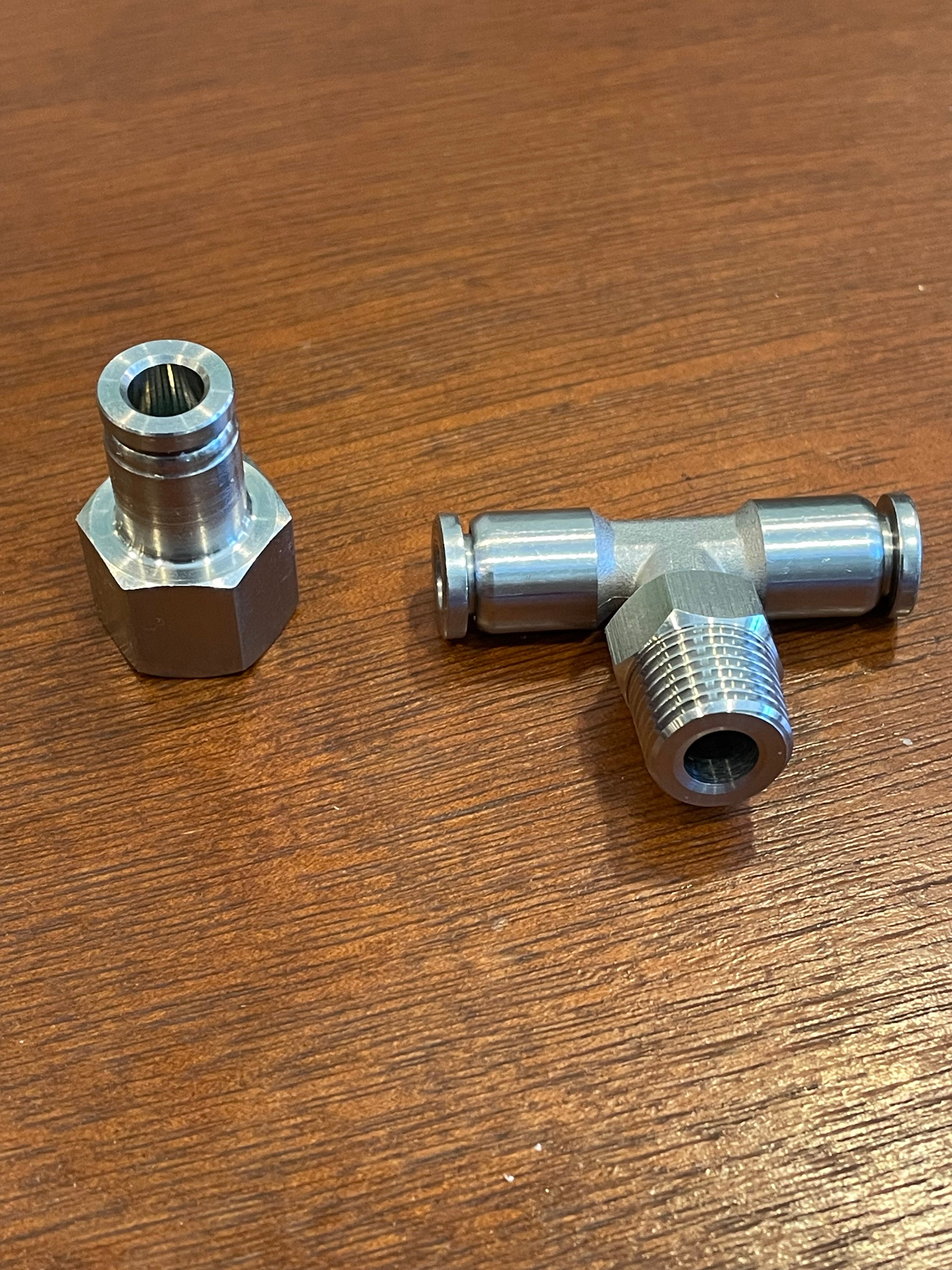 I have a some 6mm PE that I want to use up, and have already invested in both steel and plastic push-fit connectors that fit the pressure sensor, so I think I’m going to go with what’s on hand. Someday I’ll make a “finished” version of this project and it might make sense to use Inox. I’d like to have the experience of working with it, but I know from experience that using compression fittings requires some design up front to maintain tool access (you need a wrench and significant torque to make them work) and keeping the part stable while that torque is being applied can be a challenge.
